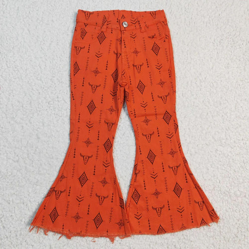 Orange Western Flare Denim Jeans